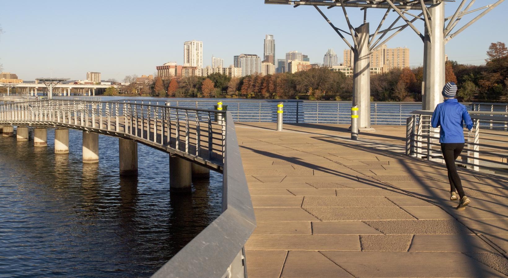 • a person walking on a bridge